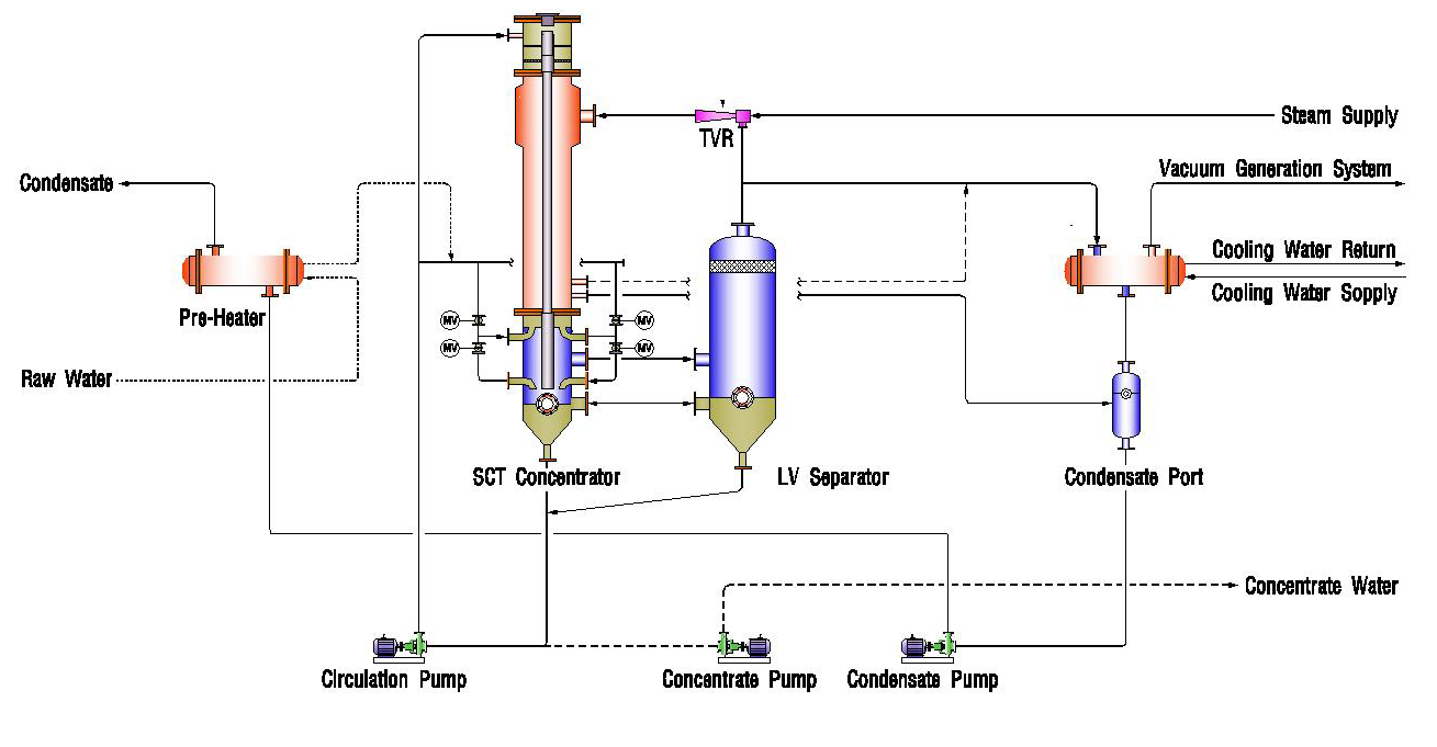 | 형식 | 기존 박막유하(FFE)형 MVR 시스템 | 자율세정(SCT)형 MVR 시스템 |
